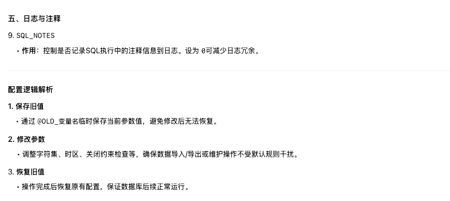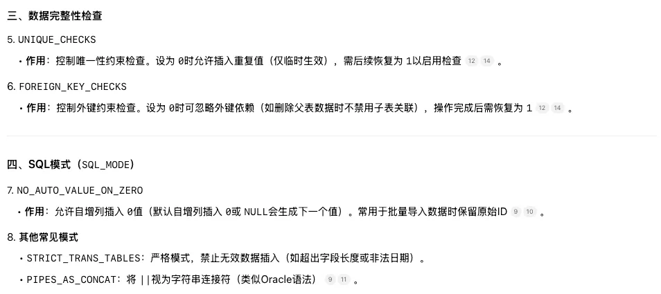 mysqldump 的备份数据的时候,会配置的SET语句,其核心作用是在脚本执行期间调整数据库参数,并在完成后恢复原始设置。 有了这些参数就可以解决上面的问题。