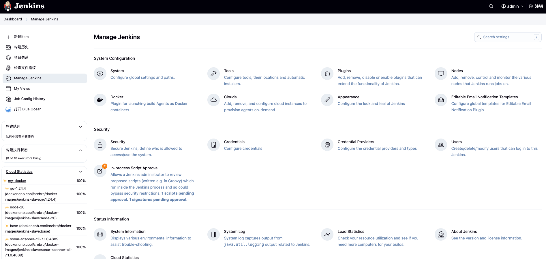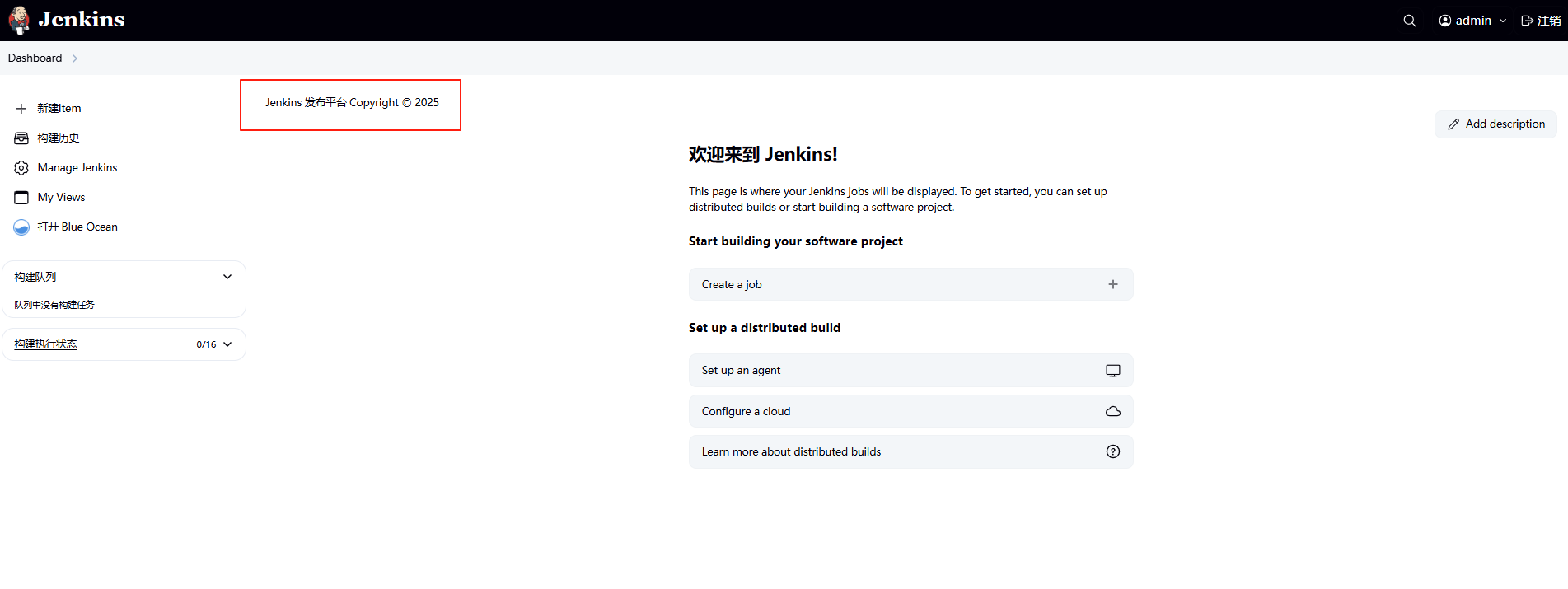 系统消息- 此消息将显示在 Jenkins 主页的顶部。这对于向用户发布通知非常有用2、