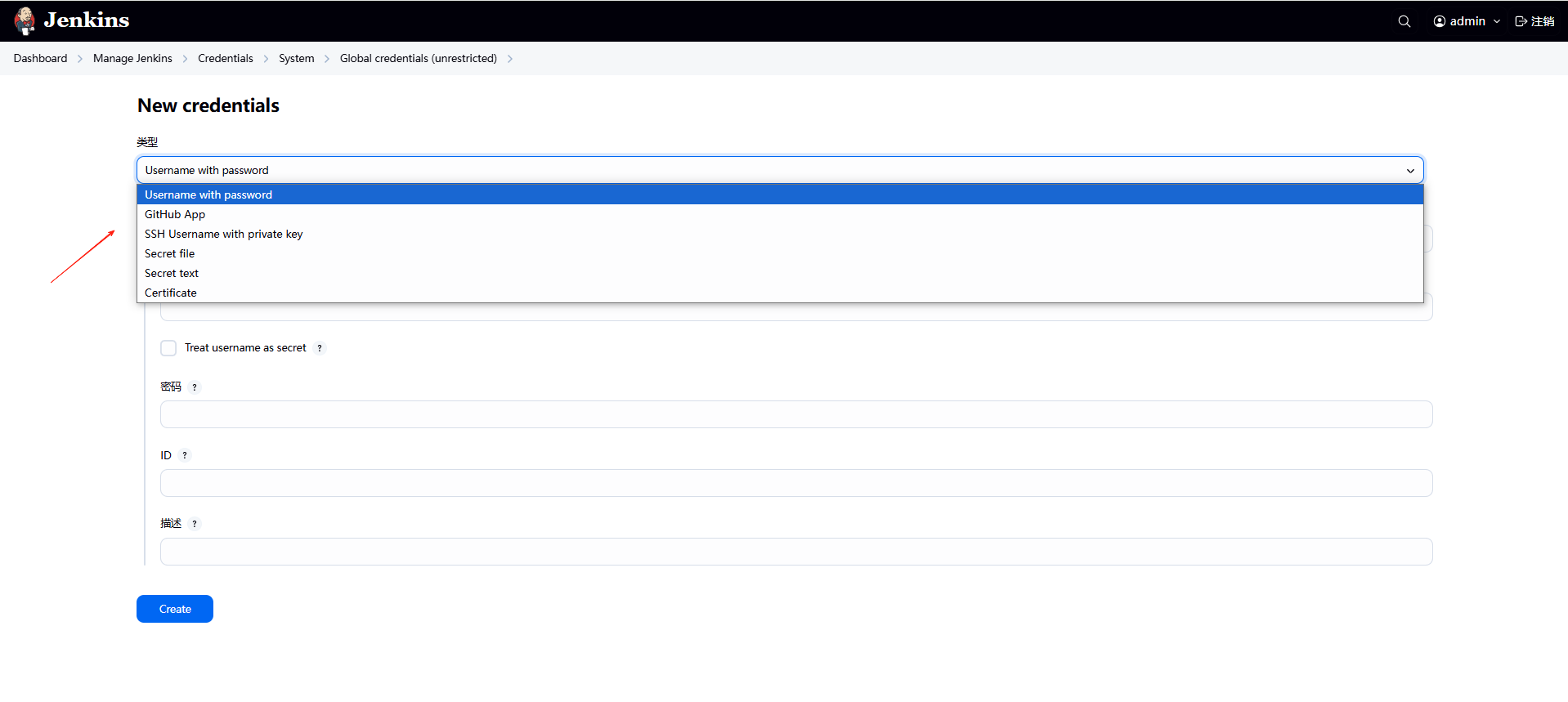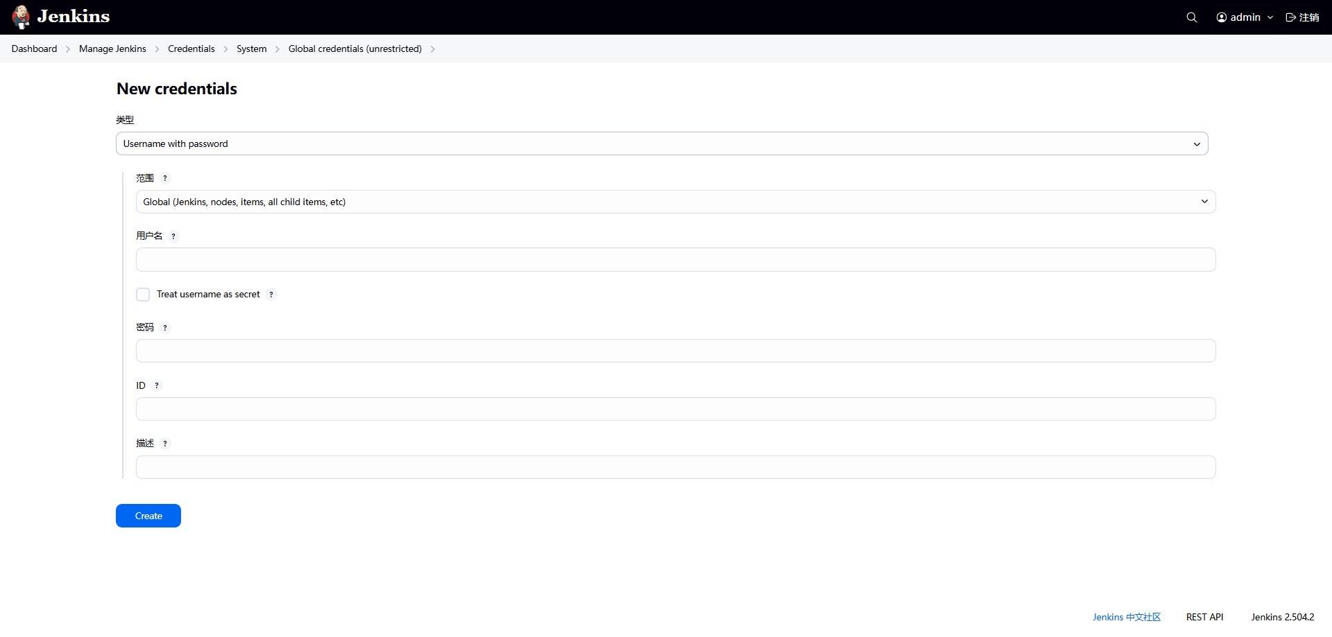 系统管理 → 凭据 → 系统 → 全局凭据
