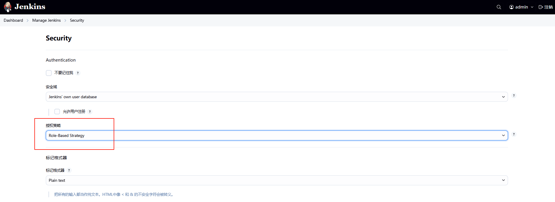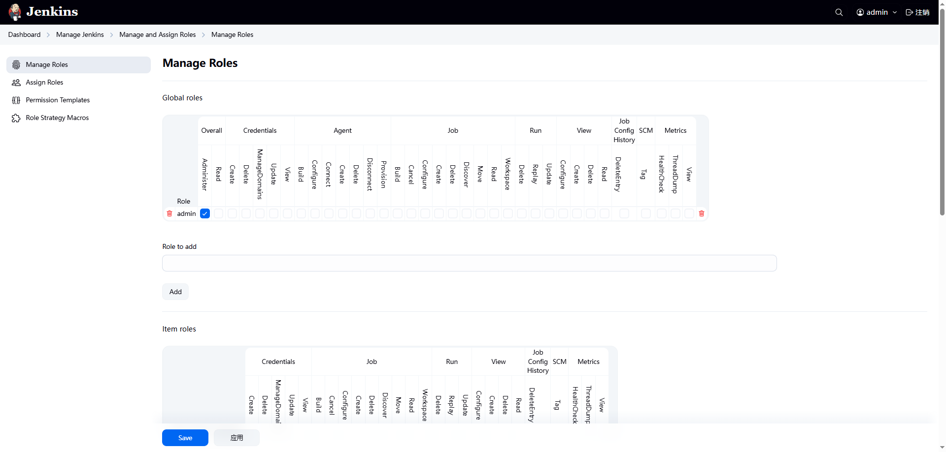 需要使用到Role-based Authorization Strategy插件