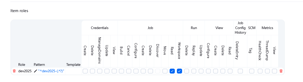 item roles dev2025: 使用正则表达式匹配关联的一组项目,匹配以dev2025-开头且任意结尾的作业,任务读取权限。