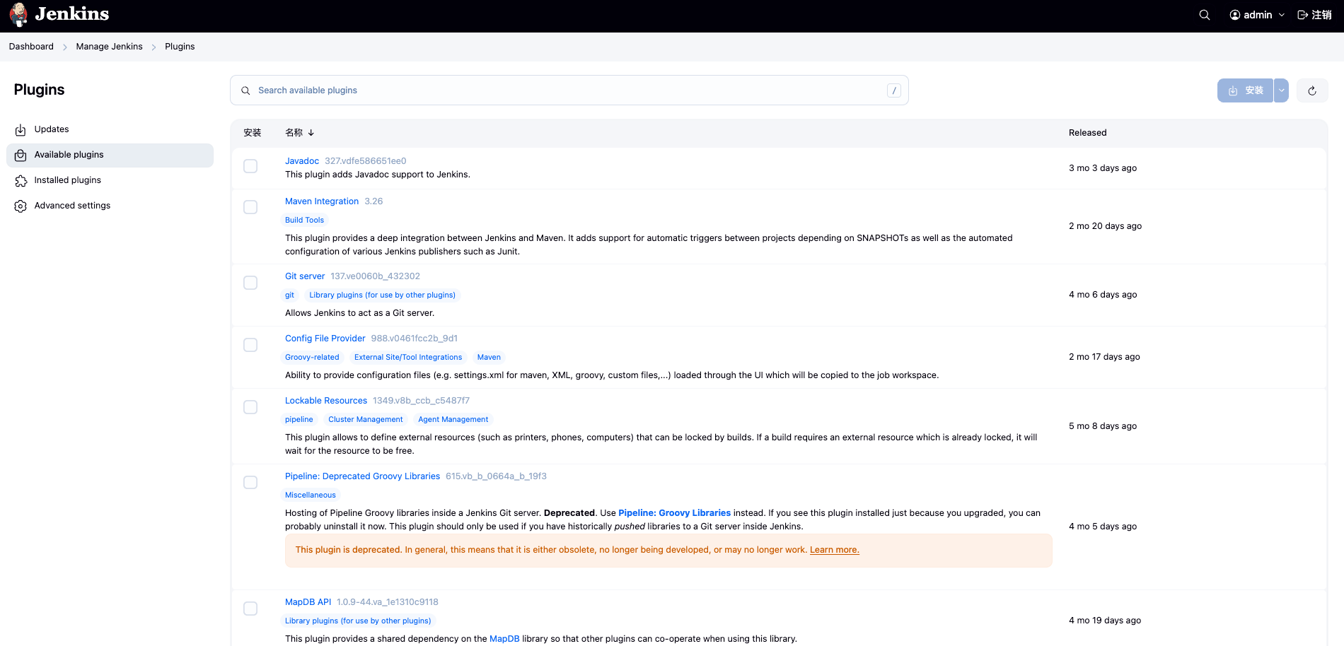 Jenkins 插件(Plugin)是 Jenkins 的核心扩展机制,用于增强和扩展 Jenkins 的功能。插件集成已超过 2,383个插件 Jenkins 本身是一个开源的持续集成和持续交付(CI/CD)工具,但其默认功能有限。通过安装插件,用户可以为 Jenkins 添加新的能力,使其支持更多工具、集成更多服务或优化工作流程。