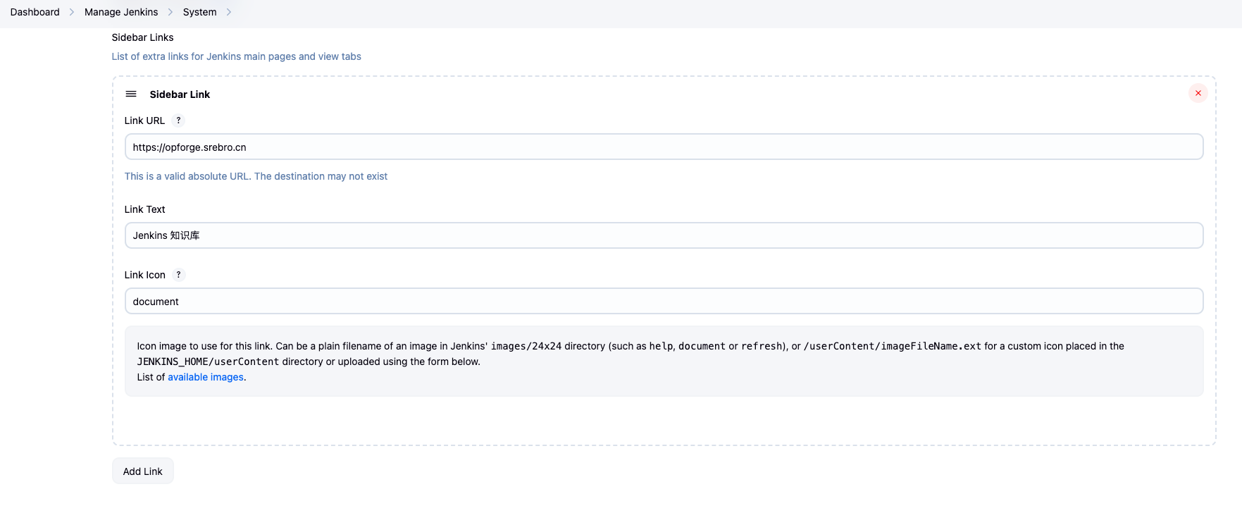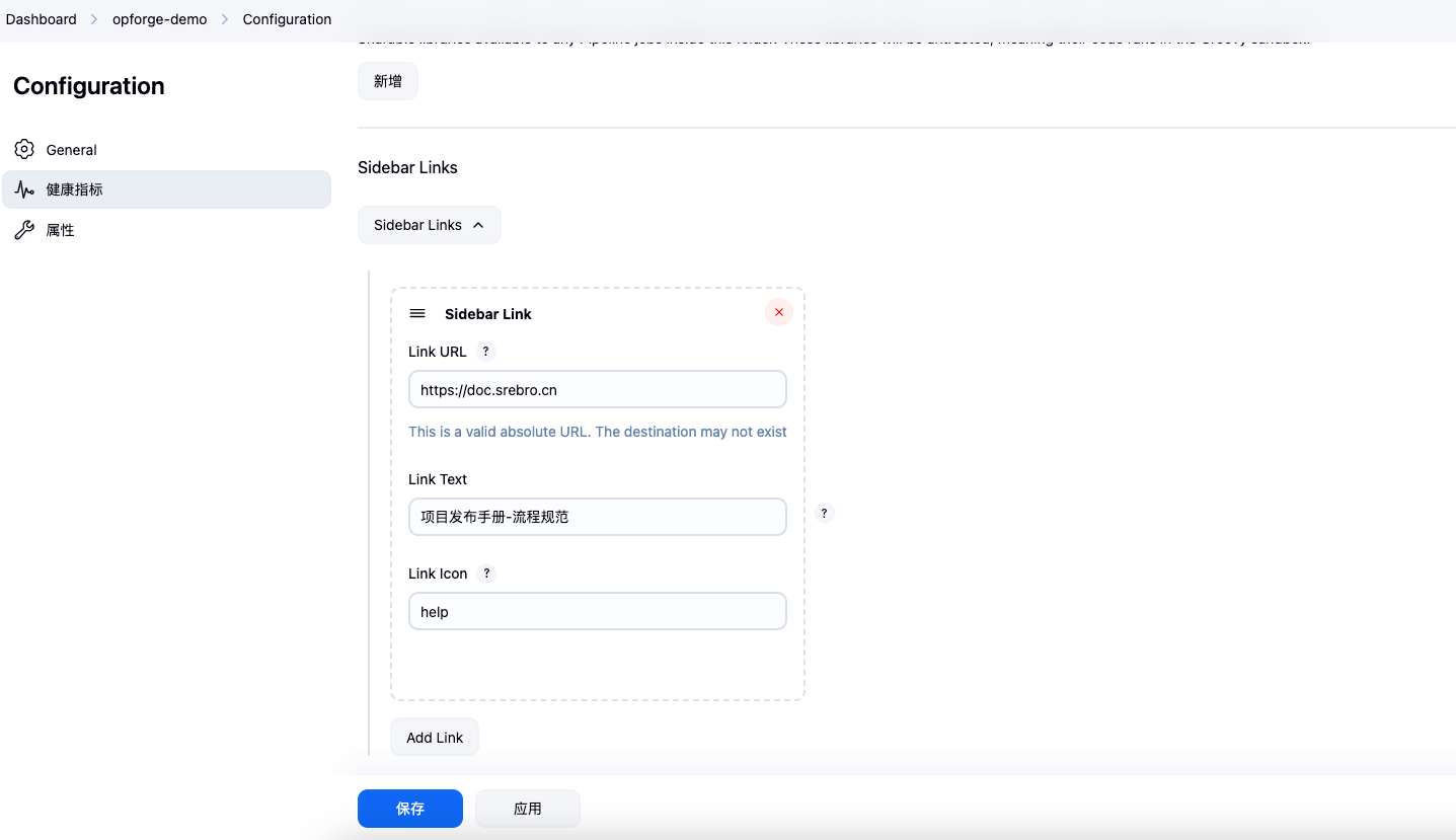 - 在 Jenkins 侧边栏添加自定义链接