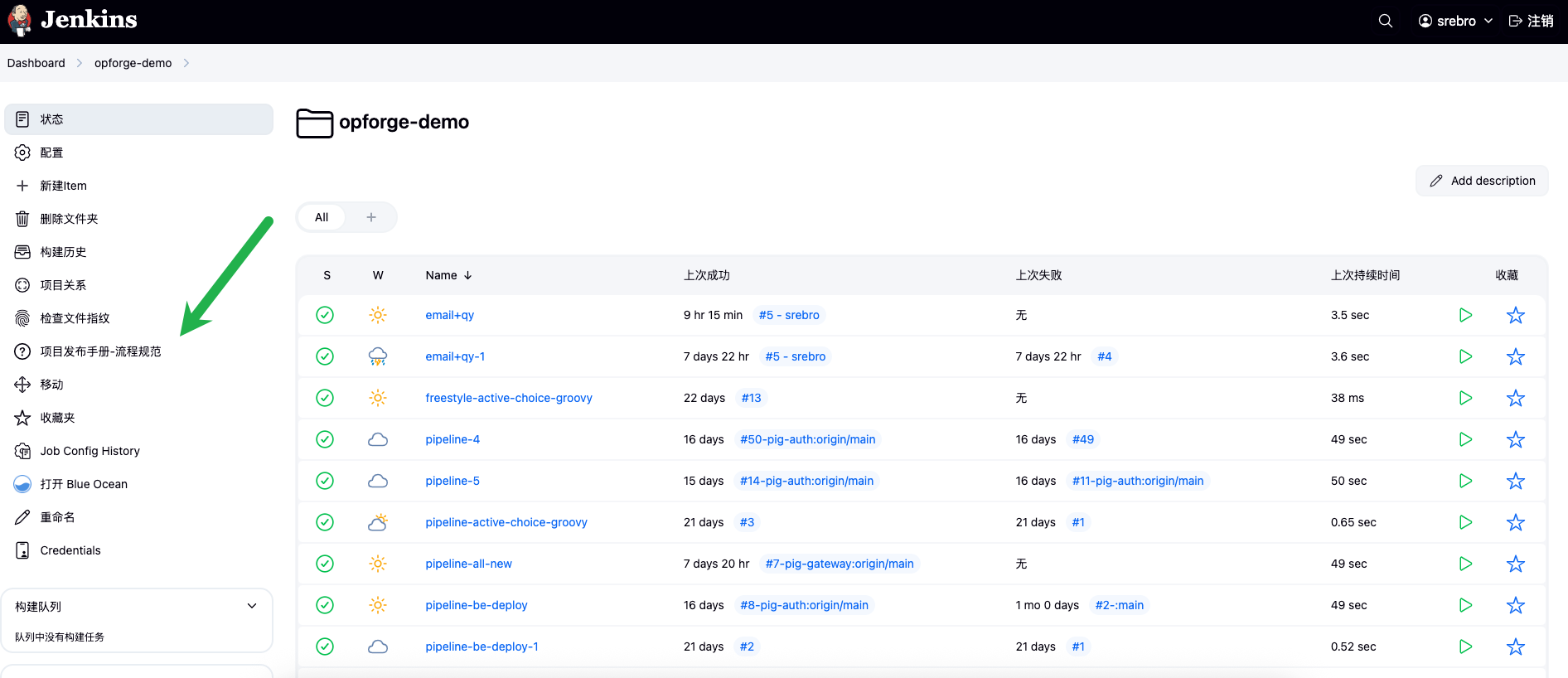 配置全局侧边栏链接,这些链接将在所有 Jenkins 页面的侧边栏中显示: