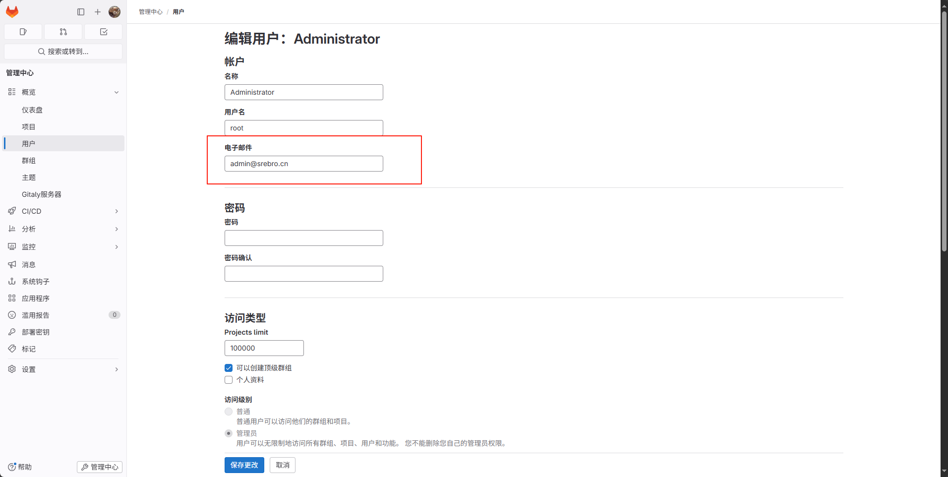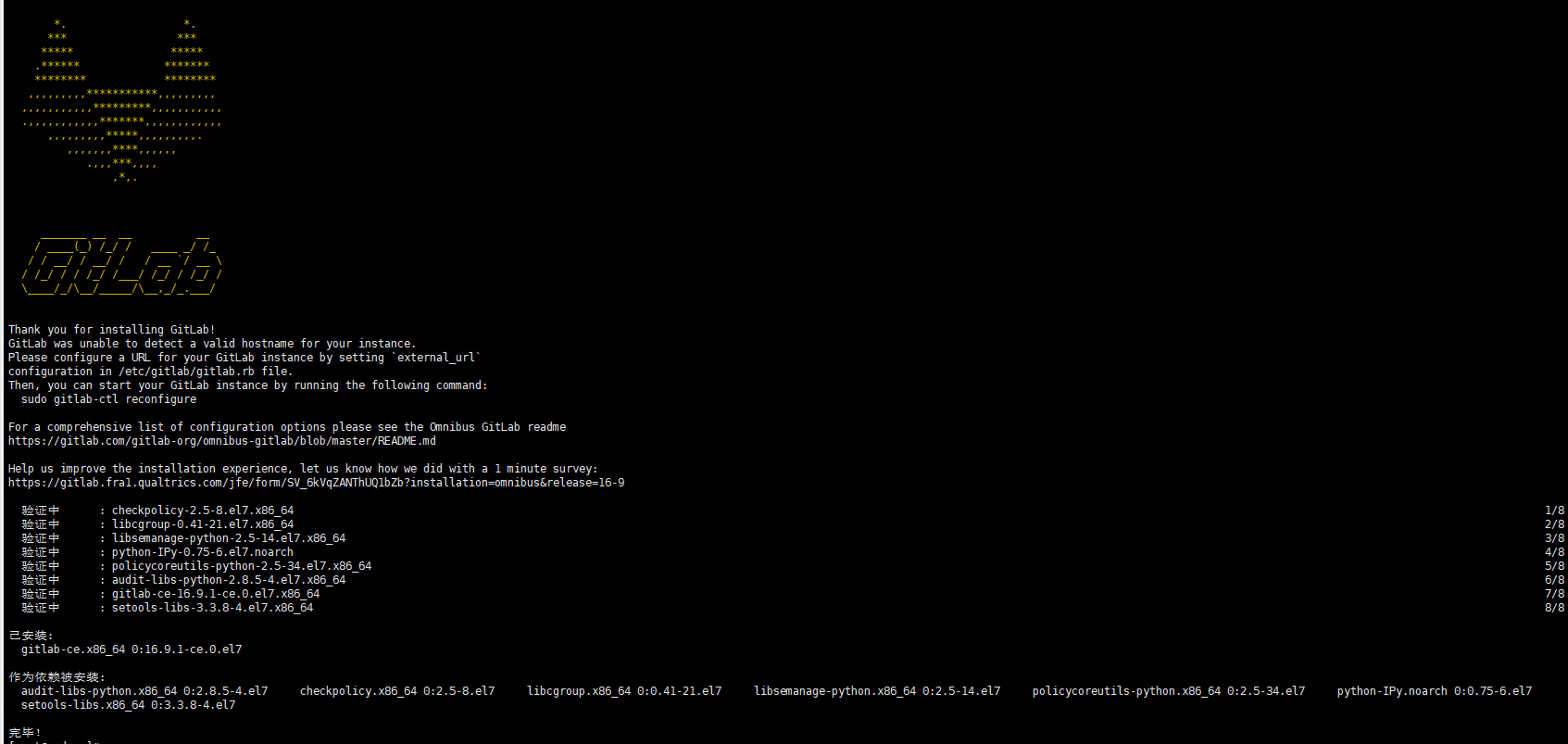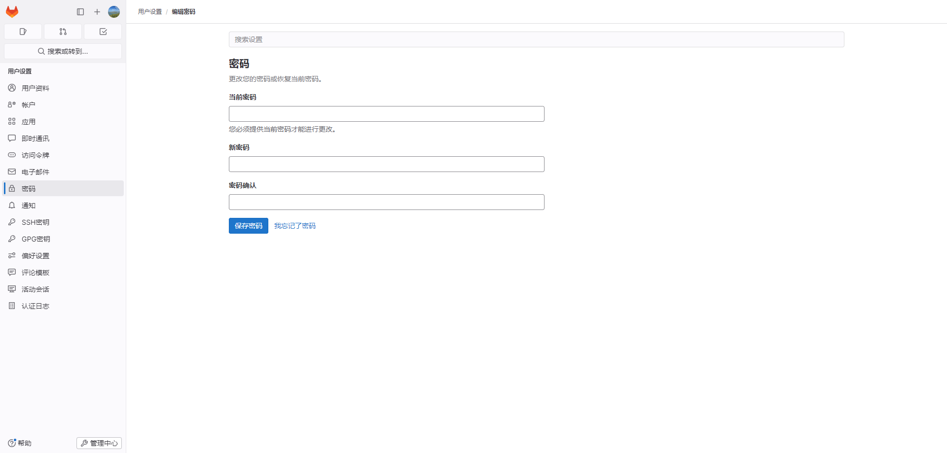 注意:出于安全原因,24 小时后,/etc/gitlab/initial_root_password 会被第一次 gitlab-ctl reconfigure 自动删除,因此若使用随机密码登录,建议安装成功初始登录成功之后,立即修改初始密码。