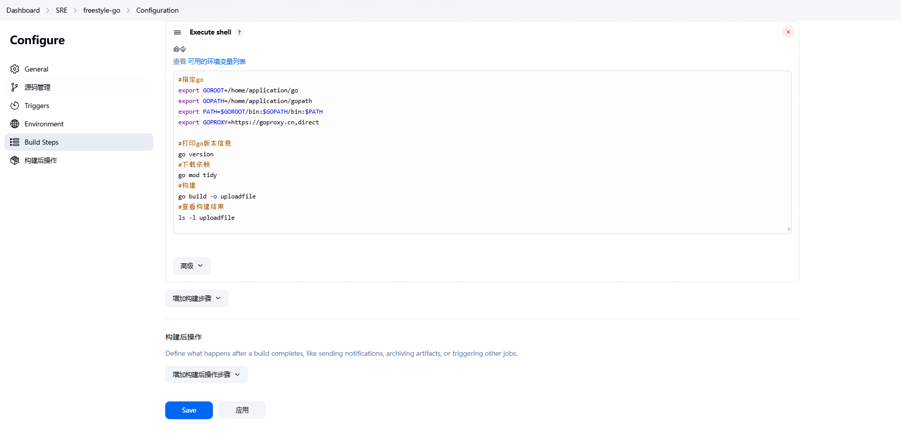 增加构建步骤/Execute shell