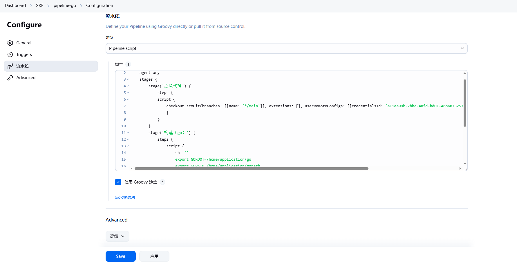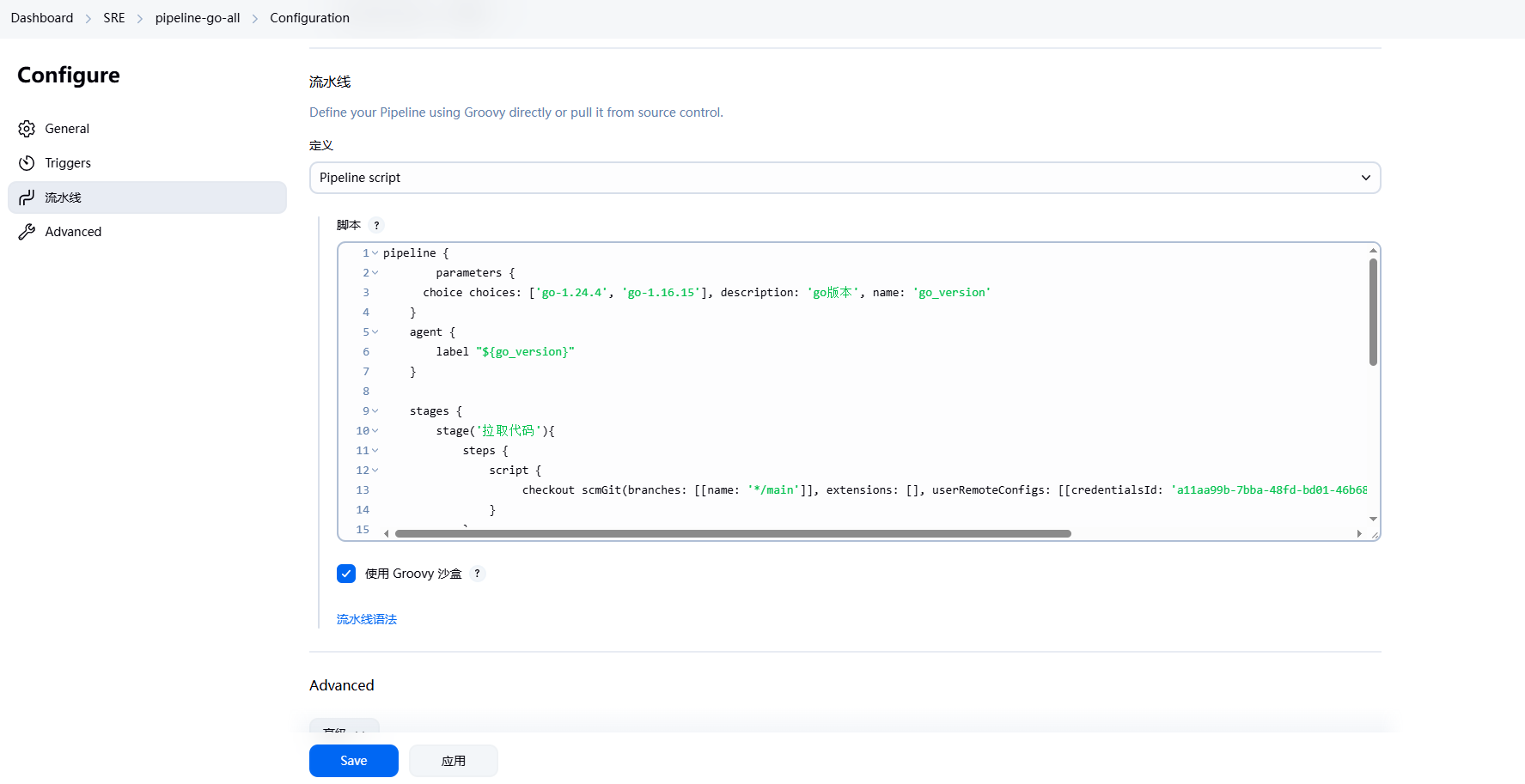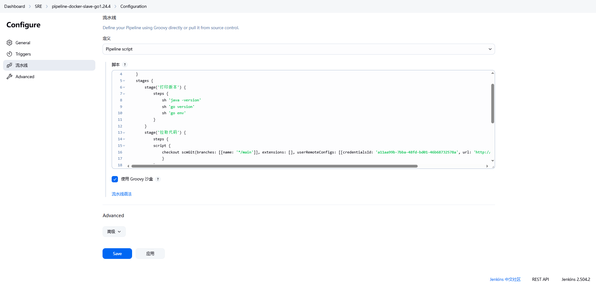 - 创建pipeline脚本