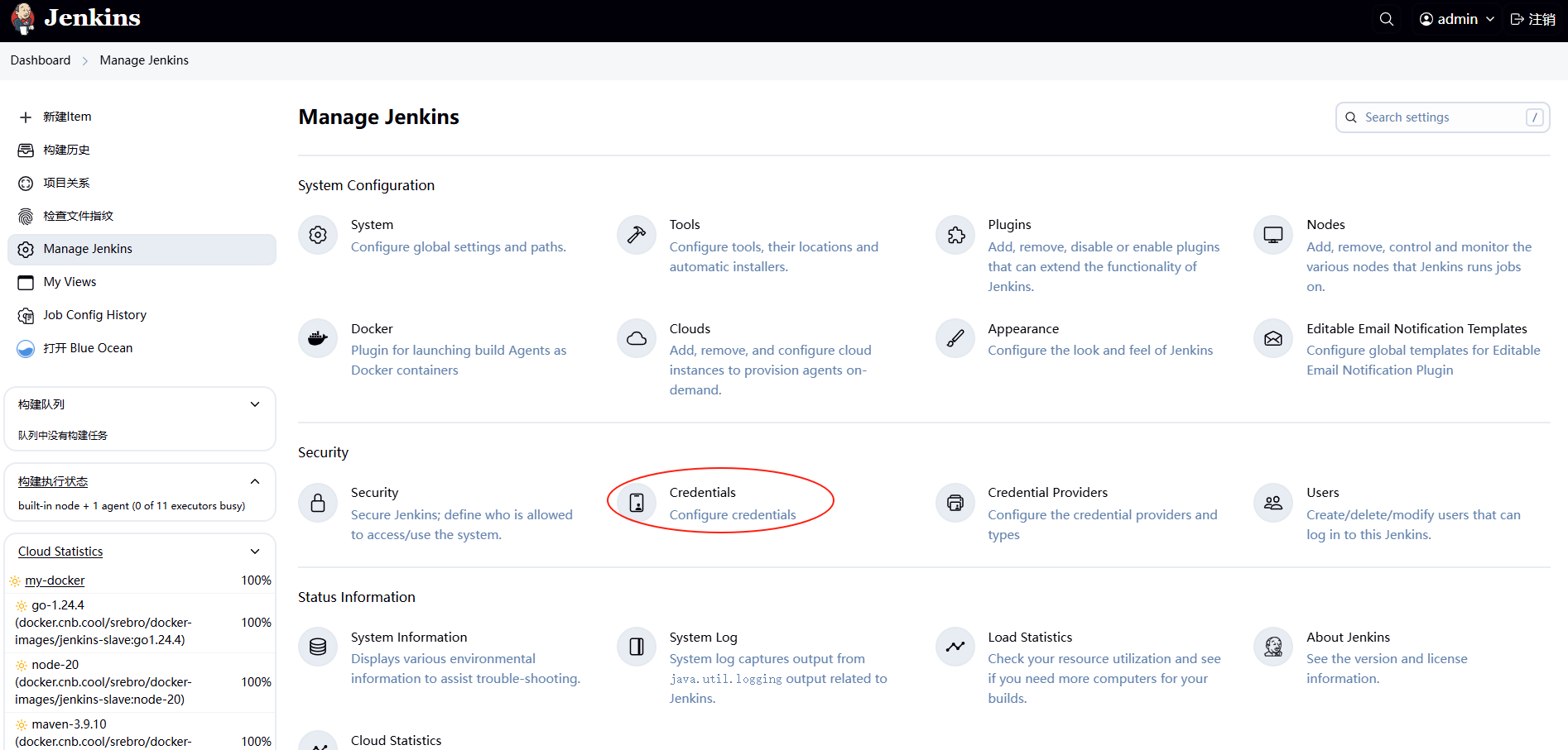 Jenkins管理界面 > 系统配置 > credentials > 全局凭证 > + Add Credentials - 选择