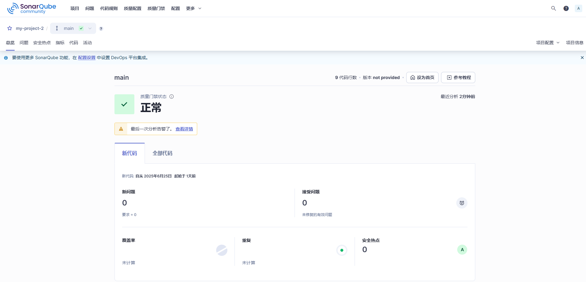 error "未通过Sonarqube的代码质量阈检查,请及时修改!failure: ${qg.status} Sonar检测报告:http://172.22.33.207:9000/dashboard?id=my-project-2"