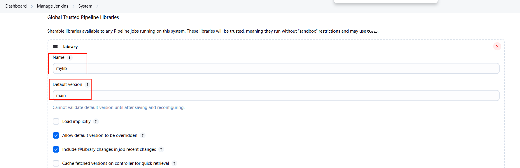 Jenkins管理 > 系统配置 > Global Pipeline Libraries - 点击
