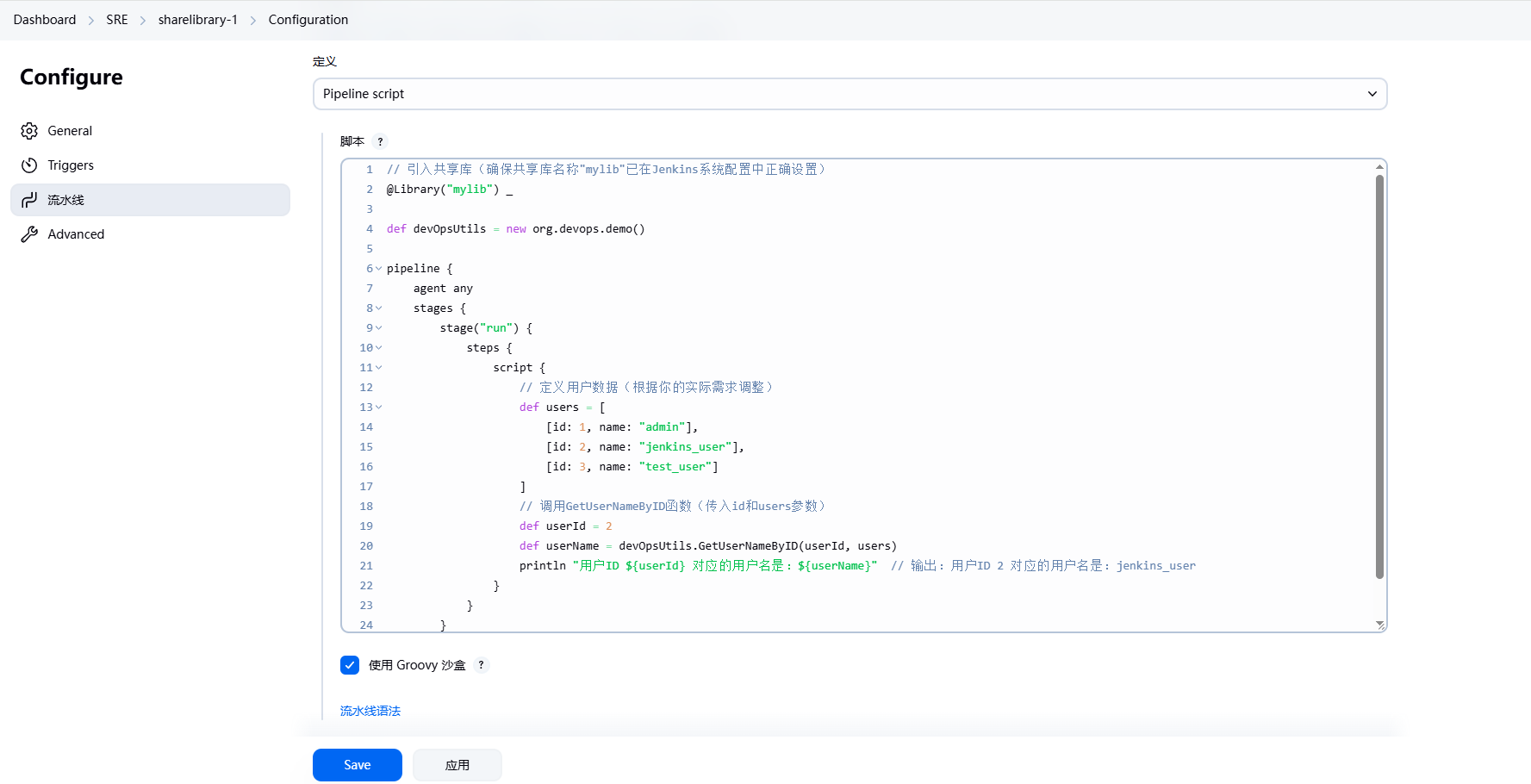 1. 在Jenkinsfile中声明和使用共享库: