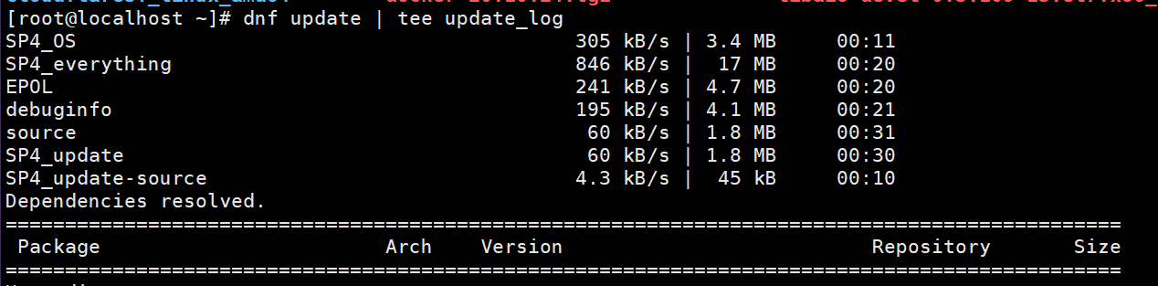 dnf update | tee update_log