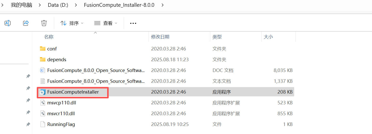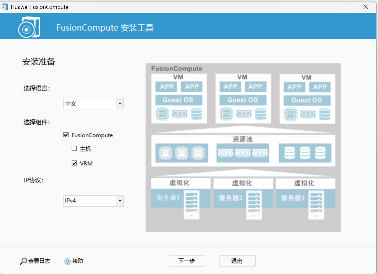 2、VRM软件包安装,需要使用FusionCompute_Installer-8.0.0.zip安装工具,打开安装工具