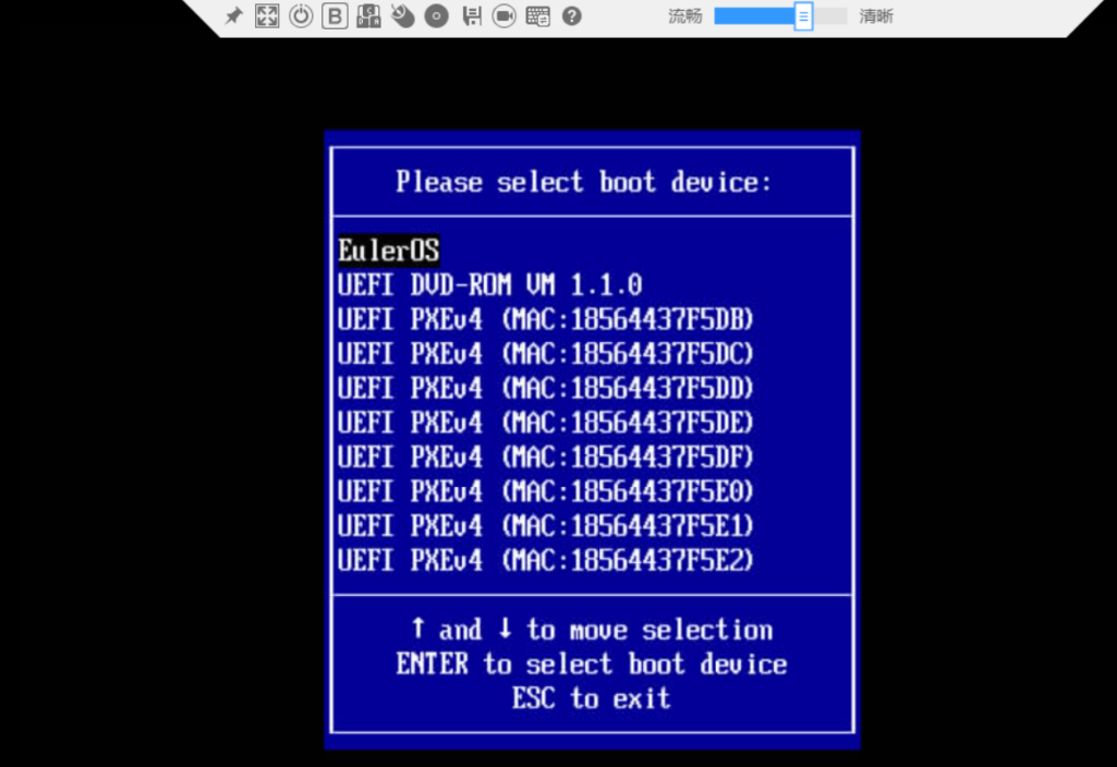 选择挂载的光驱也就是UEFI DVD-ROM VM 1.1.0