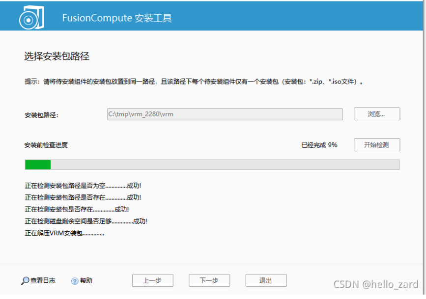 下一步传入FusionCompute_VRM-8.0.0-ARM_64.zip路径,注意VRM.zip所在文件夹名不能为中文,文件夹下只需要有安装包